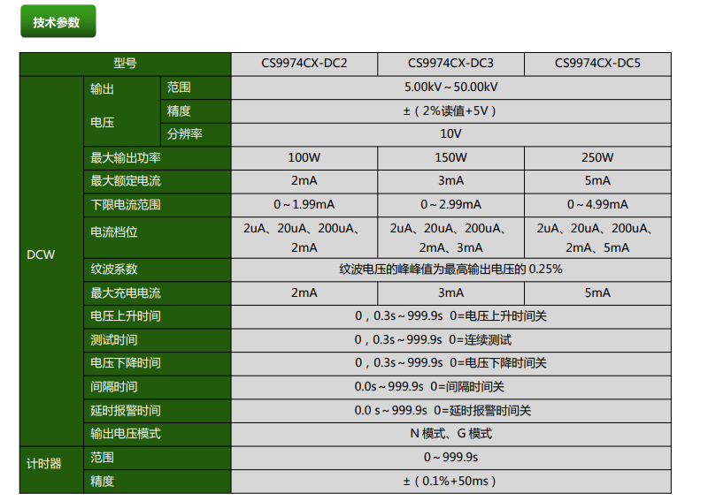 CS9974CX-DC程控耐壓測試儀產(chǎn)品參數(shù)