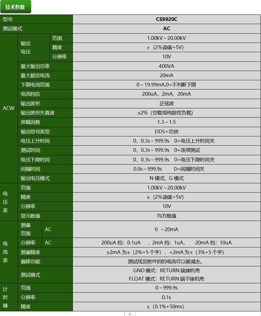 CS9920C程控超高壓測試儀產(chǎn)品參數(shù)