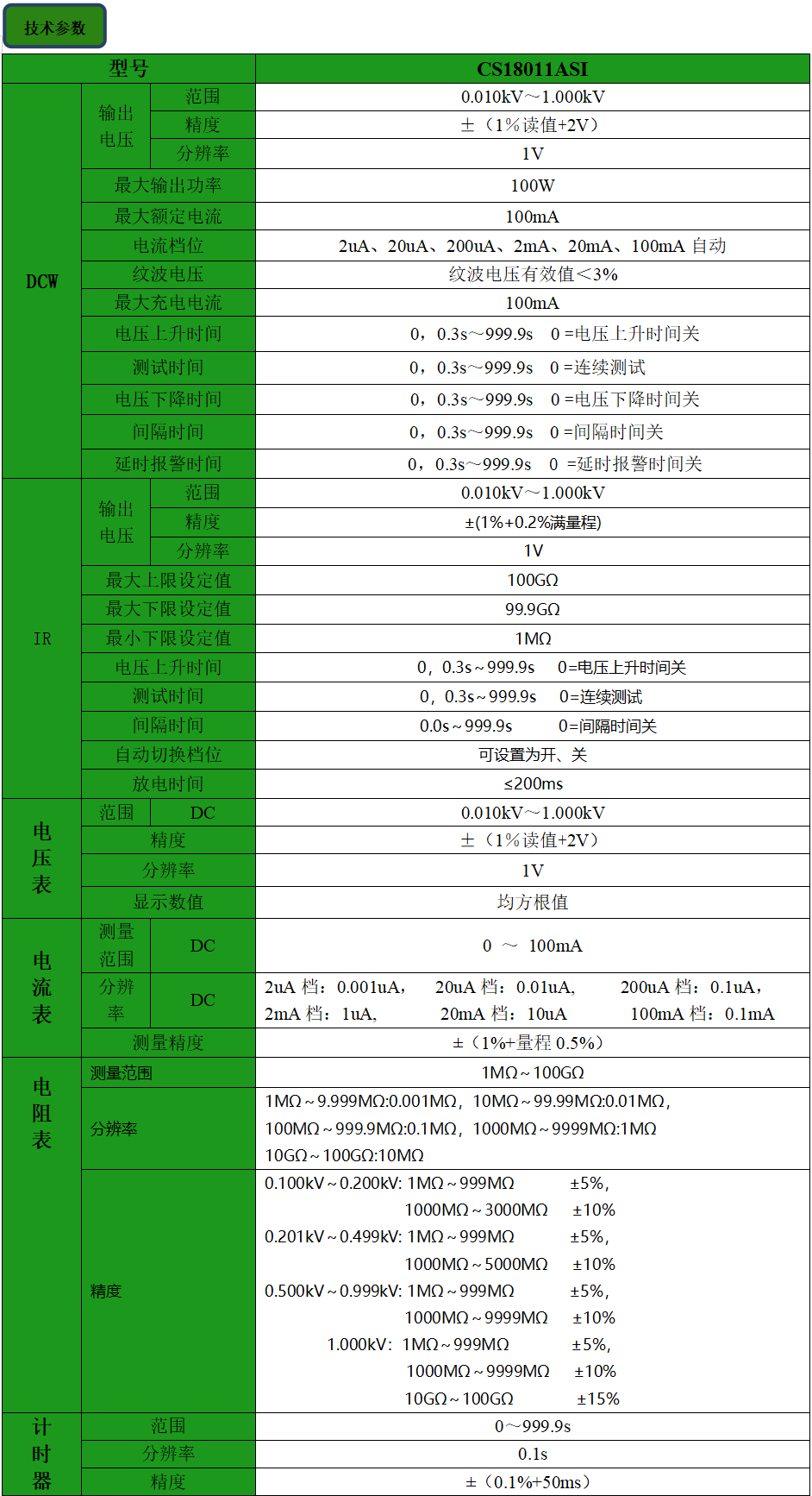 CS18011ASI 電容器絕緣耐壓測試儀產(chǎn)品參數(shù)