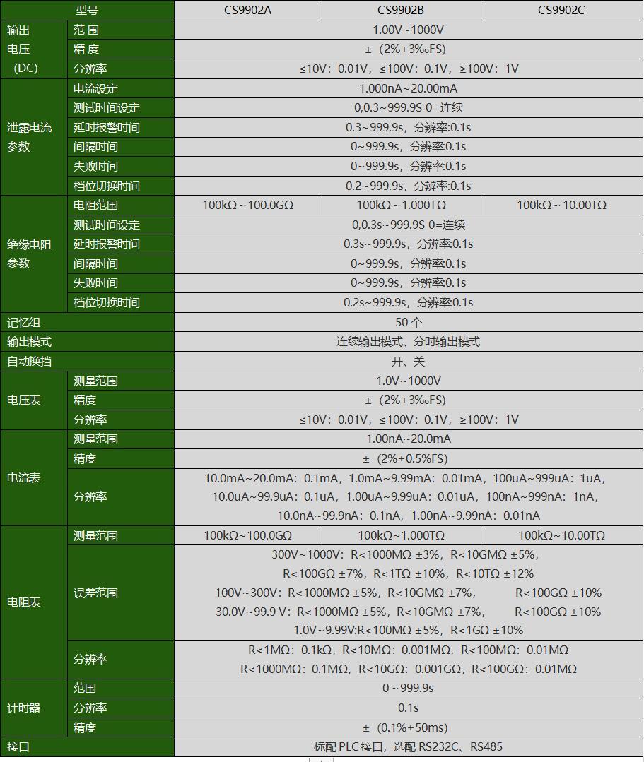 CS9902A程控電容器漏電流/絕緣電阻測試儀產(chǎn)品參數(shù)