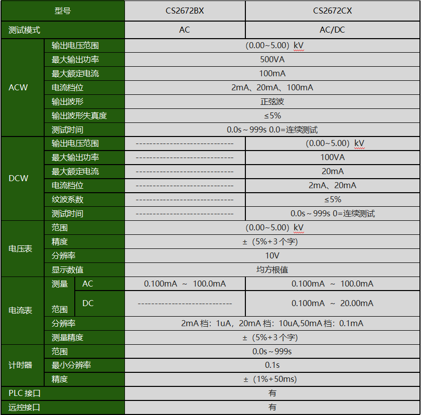 CS2672CX耐壓測試儀產(chǎn)品參數(shù)