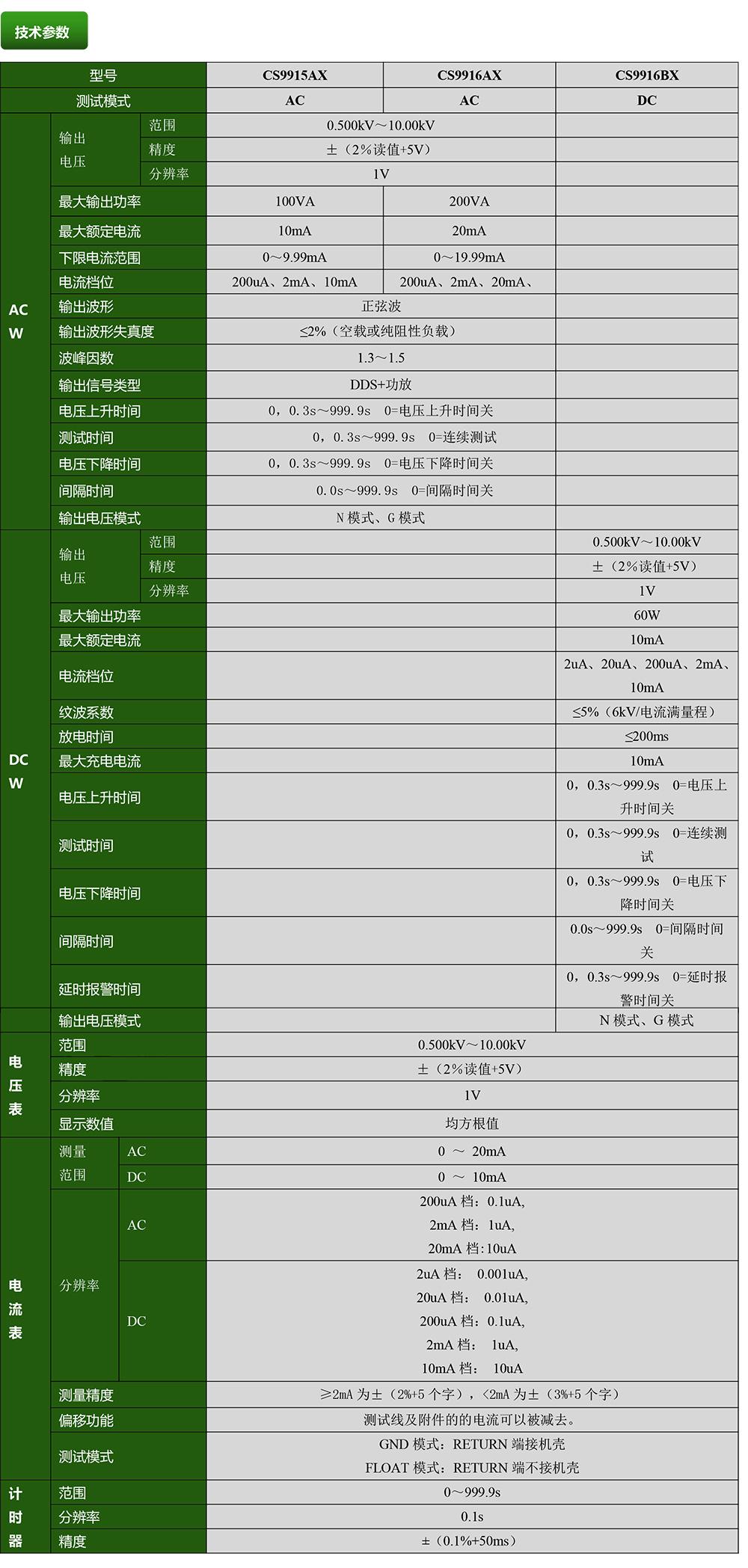 CS9915AX程控耐壓測試系列產(chǎn)品參數(shù)