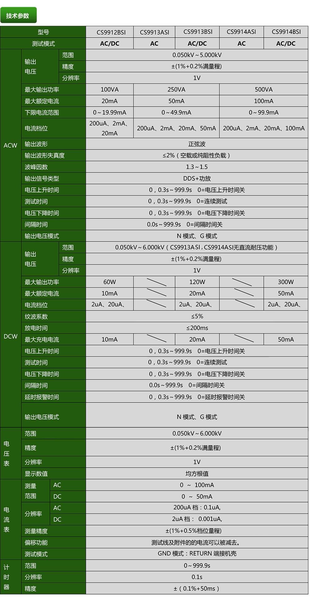 CS9912BSI程控耐壓測試系列產(chǎn)品參數(shù)