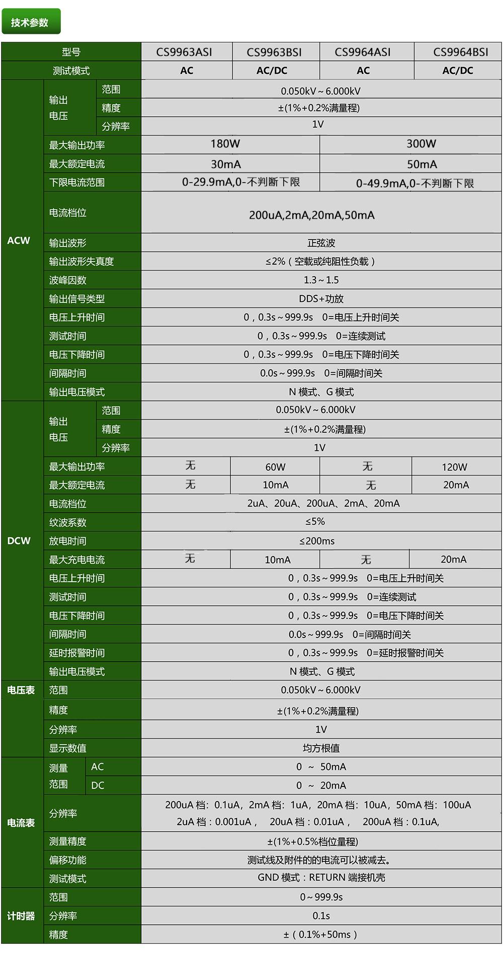 CS9963/64/ASI/BSI耐壓測(cè)試儀產(chǎn)品參數(shù)