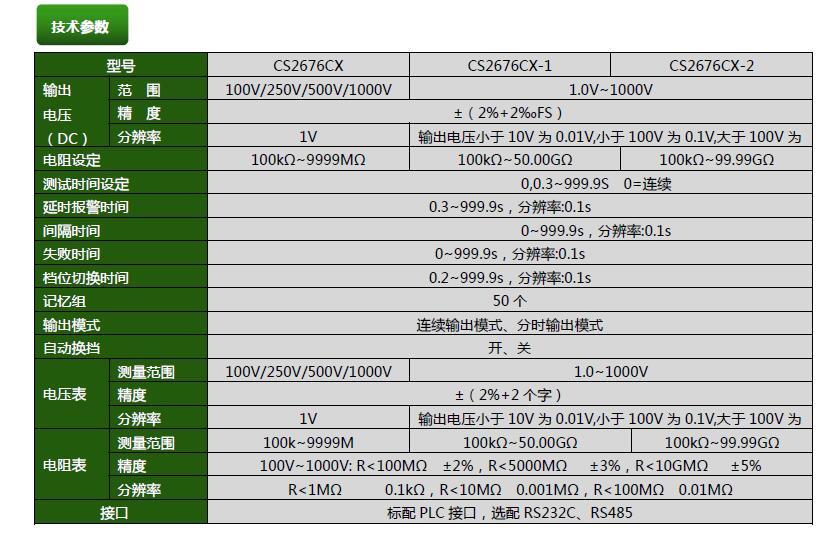 CS2676CX/-1/-2絕緣電阻測(cè)試儀產(chǎn)品參數(shù)