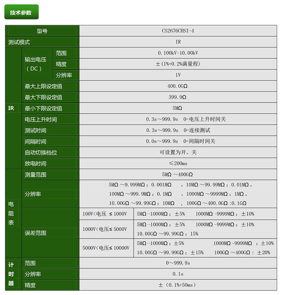 CS2676CHSI-4絕緣電阻測試儀產(chǎn)品參數(shù)