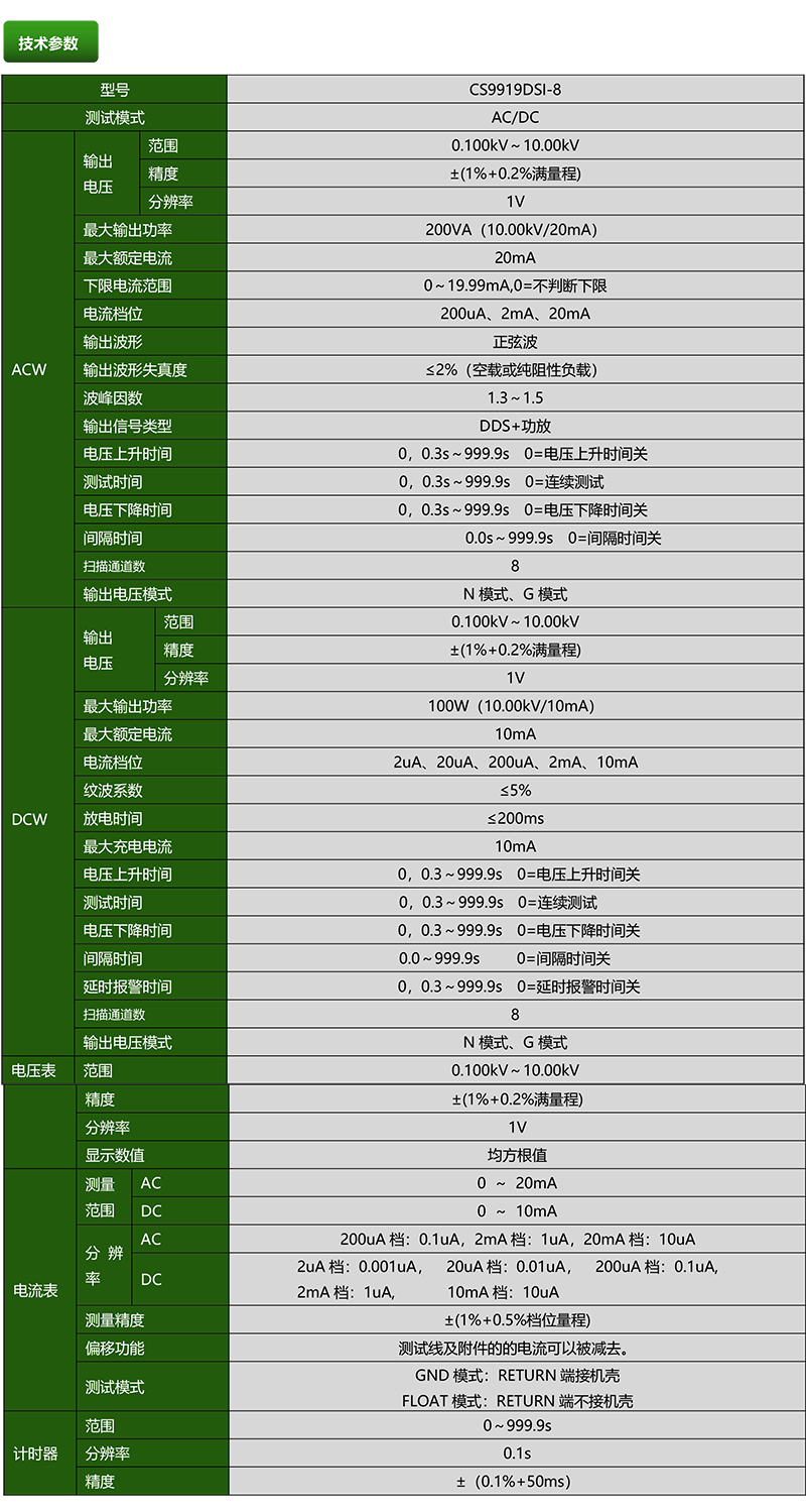 CS9919DSI-8程控多路耐壓測(cè)試儀產(chǎn)品參數(shù)