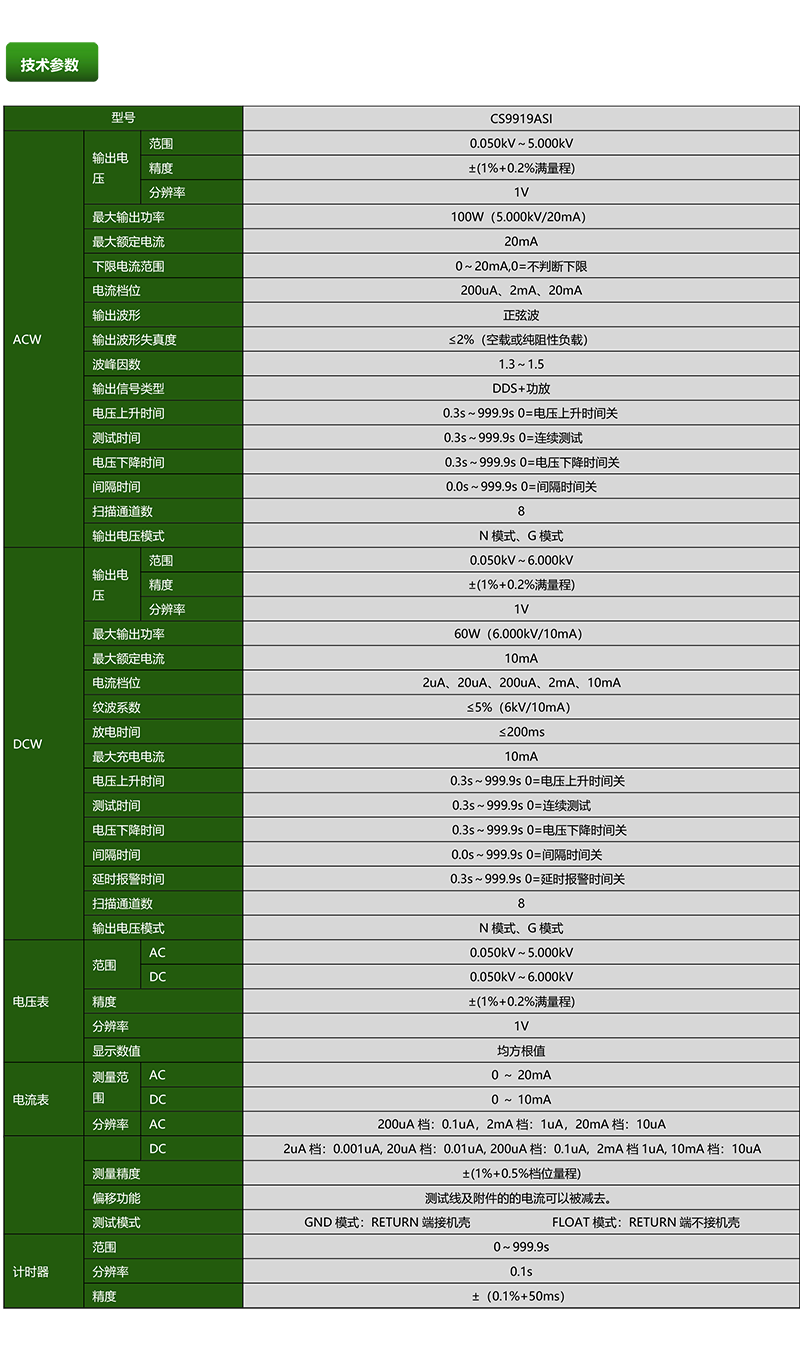 CS9919ASI多路耐壓測試儀產(chǎn)品參數(shù)