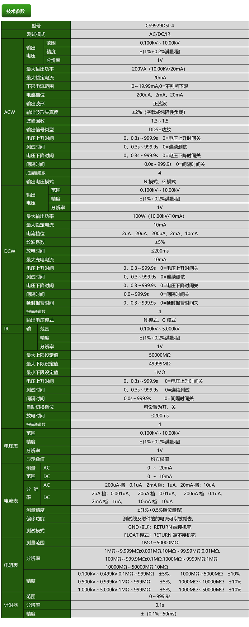 CS9929DSI-4多路絕緣耐壓測(cè)試儀產(chǎn)品參數(shù)