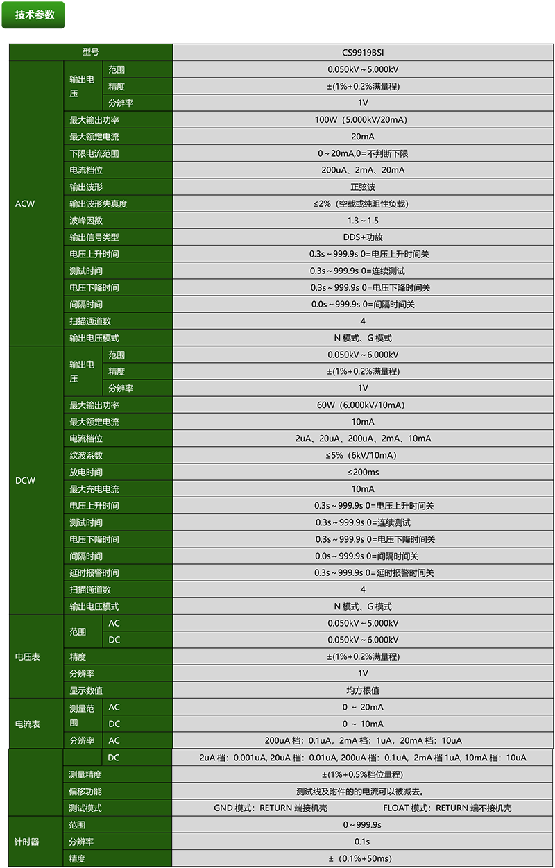 CS9919BSI多路耐壓測試儀產(chǎn)品參數(shù)
