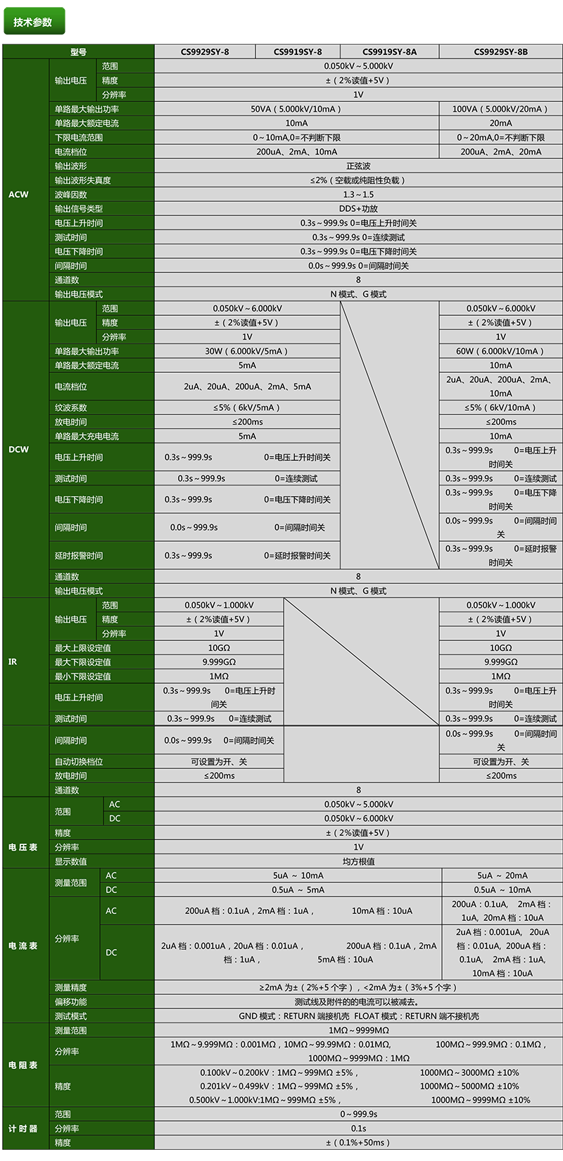CS9929SY-8多路同步絕緣耐壓測試儀產(chǎn)品參數(shù)