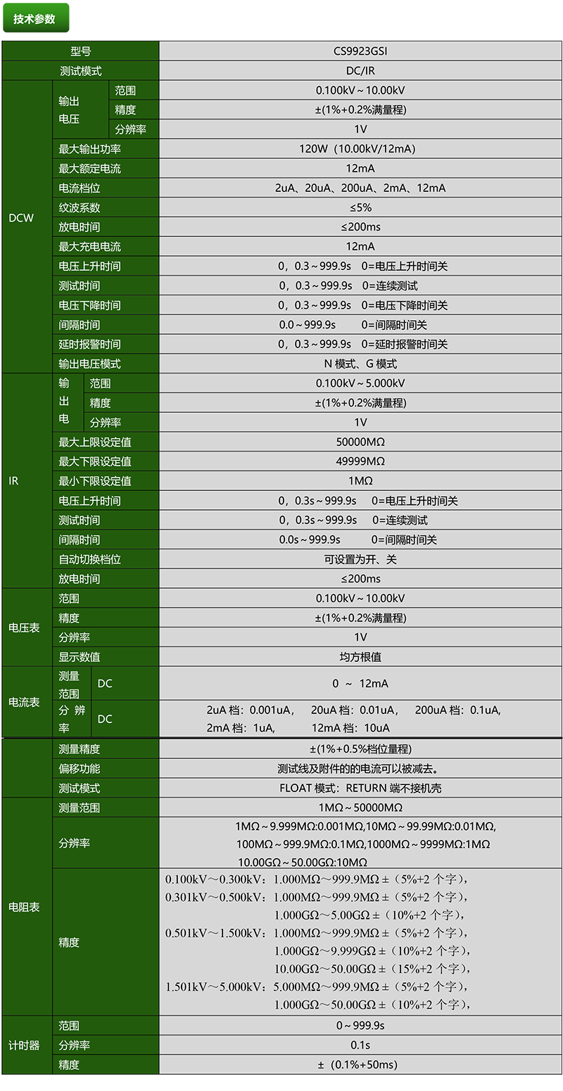 CS9923GSI程控光伏絕緣耐壓測試儀,DCW:10KV/12mA,IR:5KV/50GΩ