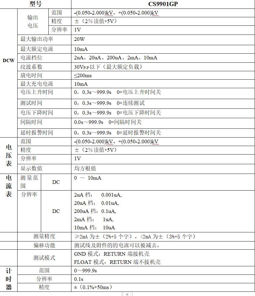 CS9901GP光伏PID耐壓測試儀產品參數(shù)