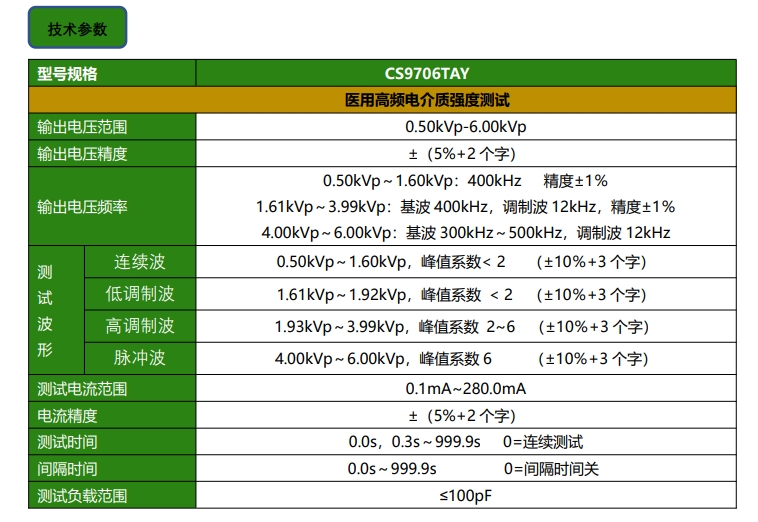 CS9706TAY醫(yī)用高頻電介質(zhì)強(qiáng)度測(cè)試儀產(chǎn)品參數(shù)