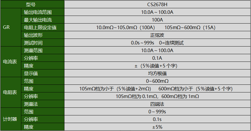 CS2678H接地電阻測試儀(100A)產(chǎn)品參數(shù)