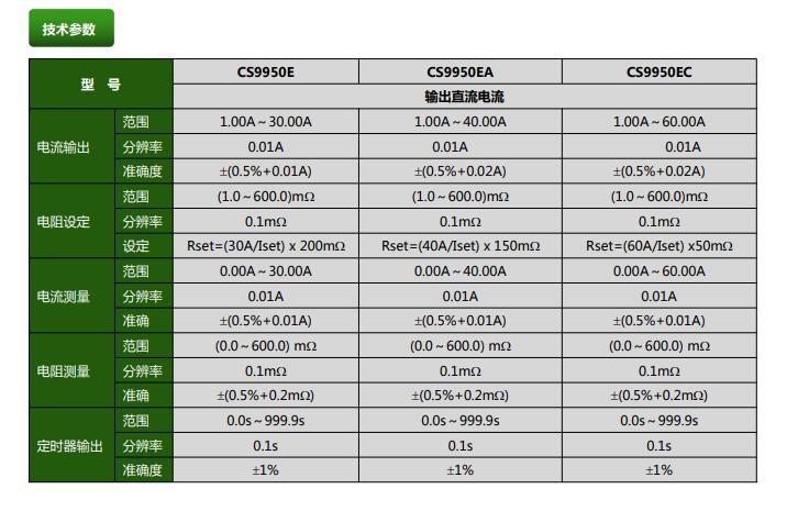 CS9950E/A/C直流接地電阻測試儀產(chǎn)品參數(shù)