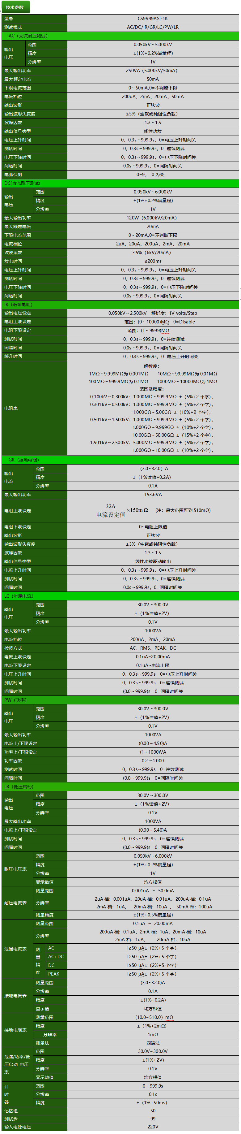 CS9949ASI-1K程控安規(guī)綜合測(cè)試儀產(chǎn)品參數(shù)
