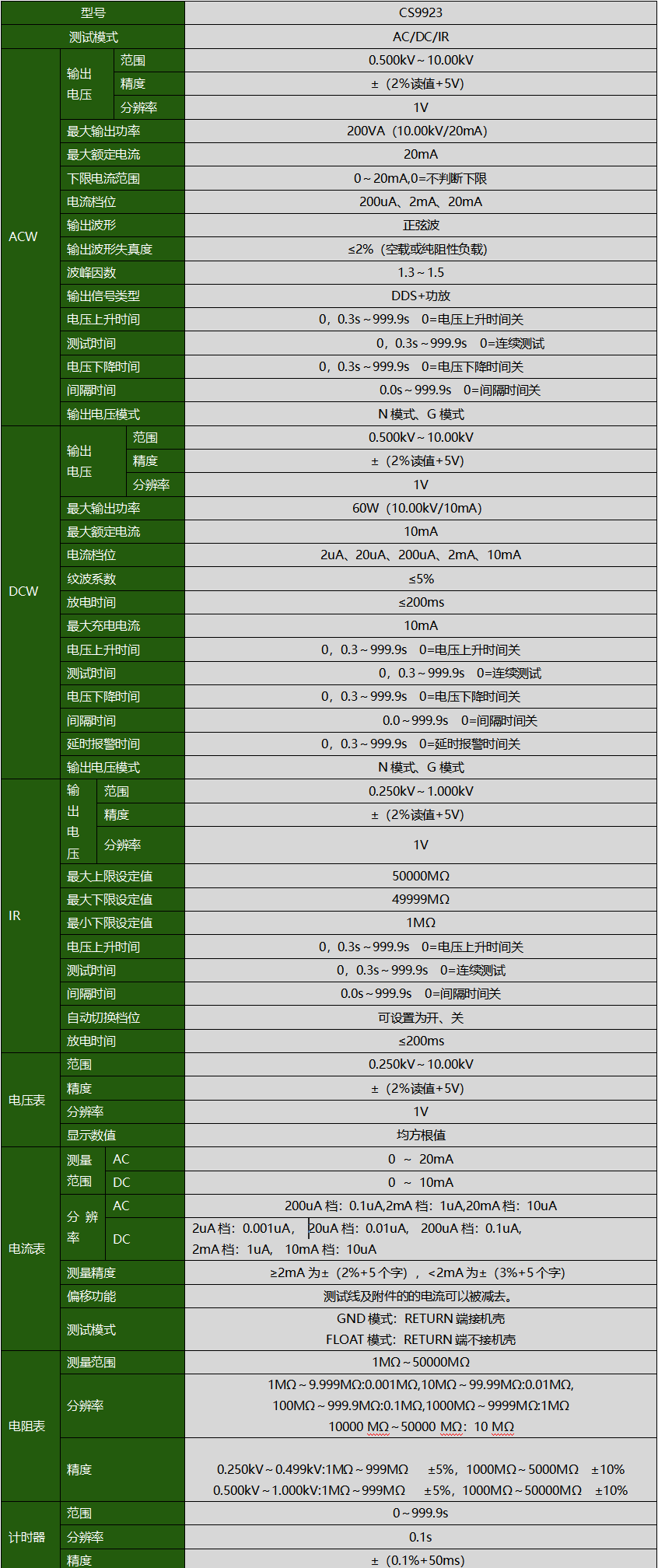 CS9923程控絕緣耐壓測試儀產(chǎn)品參數(shù)