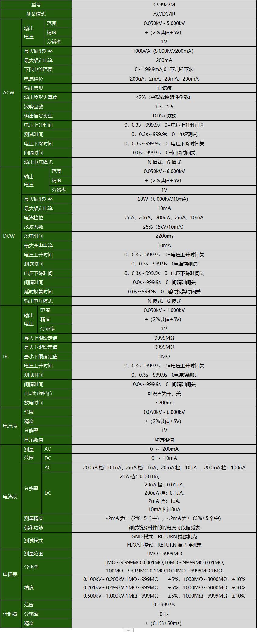 CS9922M程控絕緣耐壓測試儀產(chǎn)品參數(shù)