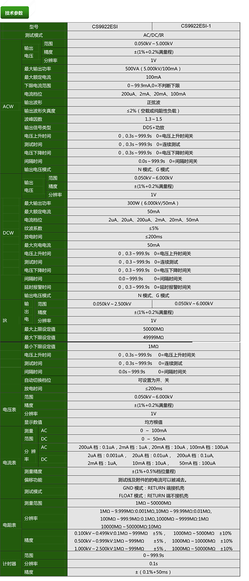 CS9922ESI程控絕緣耐壓測(cè)試儀產(chǎn)品參數(shù)