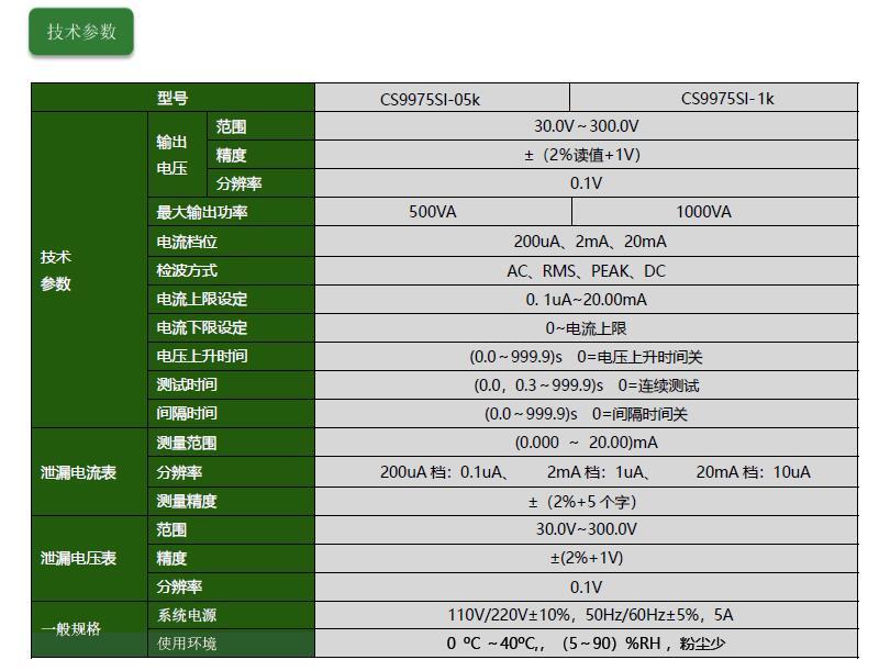 CS9975SI-05K/1K泄漏電流測試儀產(chǎn)品參數(shù)