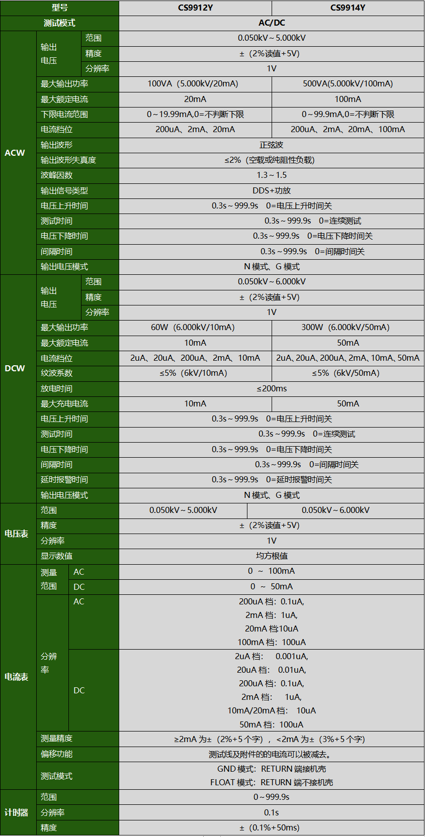 CS9912Y程控醫(yī)用耐壓測(cè)試儀(AC/DC)產(chǎn)品參數(shù)