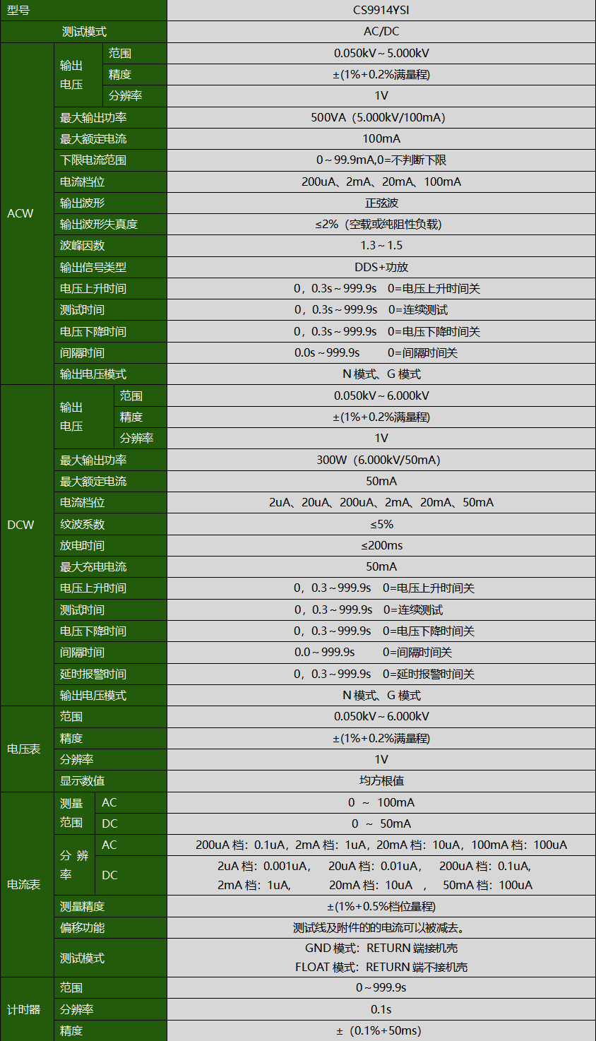 CS9914YSI程控醫(yī)用耐壓測試儀(AC/DC)產(chǎn)品參數(shù)