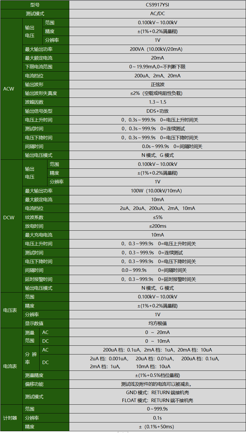 CS9917YSI程控醫(yī)用耐壓測試儀(AC/DC)產(chǎn)品參數(shù)