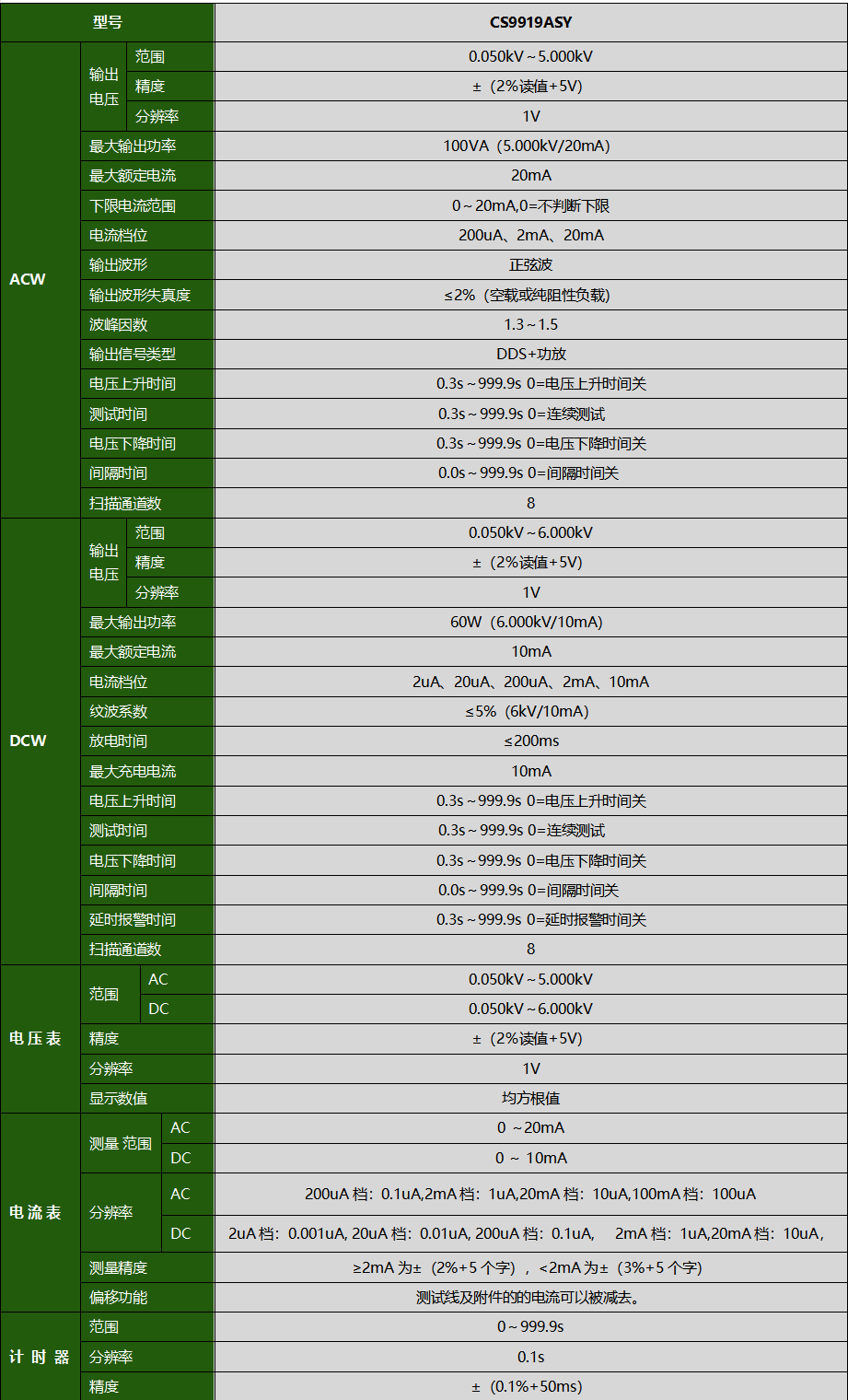 CS9919ASY程控醫(yī)用多路耐壓測試儀產(chǎn)品參數(shù)