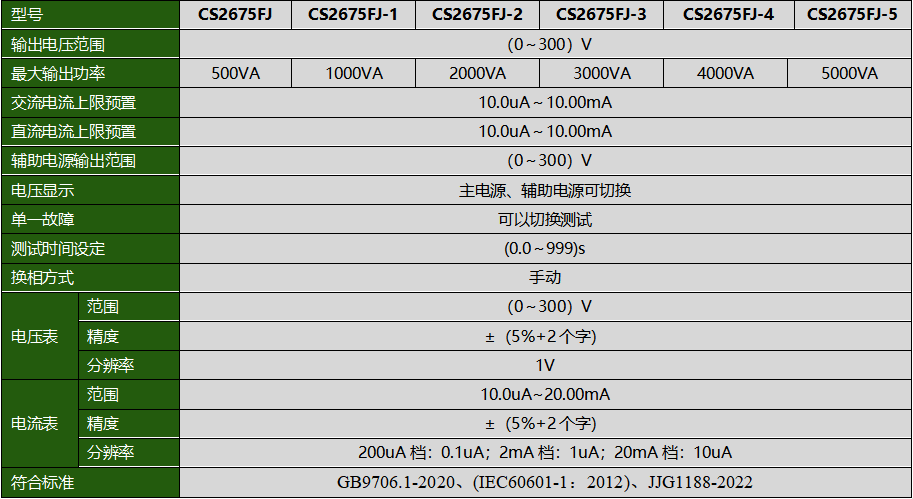 CS2675FJ醫(yī)用漏電流測試儀產品參數(shù)