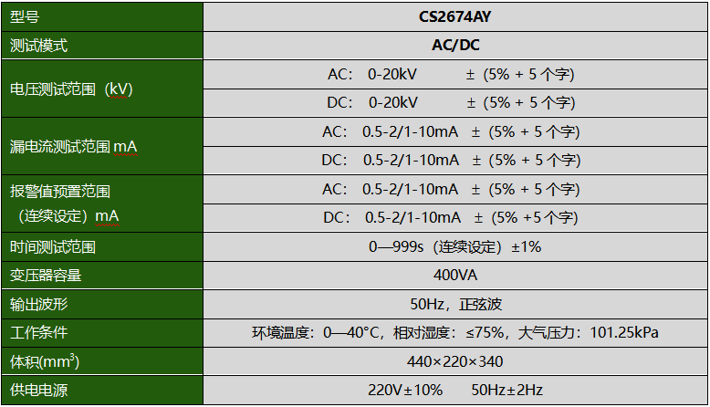 CS2674AY交直流醫(yī)用耐壓測試儀產(chǎn)品參數(shù)