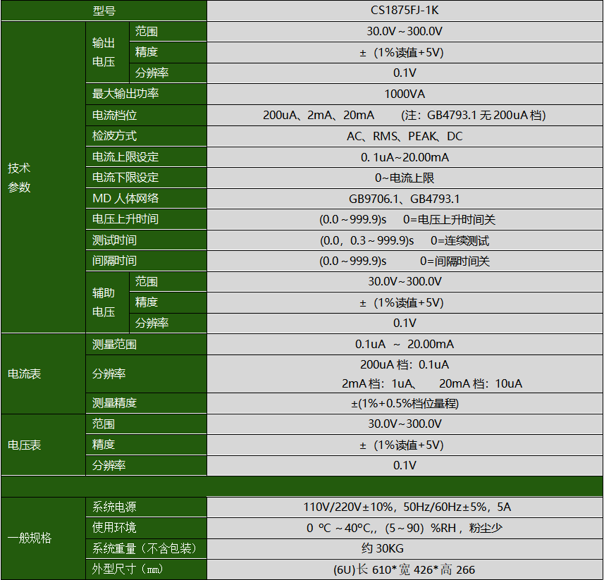 CS1875FJ-1K醫(yī)用漏電流測試儀