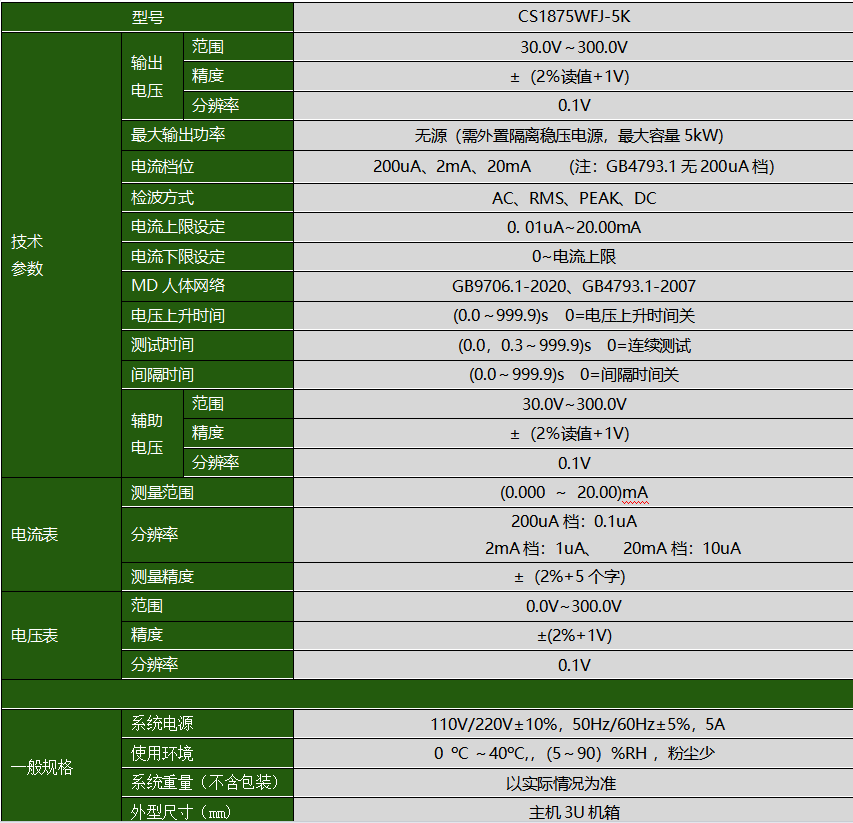 CS1875WFJ-5K醫(yī)用漏電流測試儀產品參數
