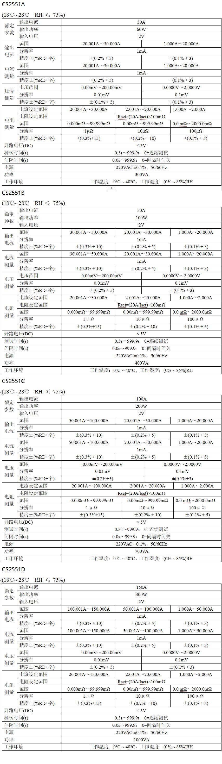 CS2551系列大電流直流低電阻測試儀產(chǎn)品參數(shù)